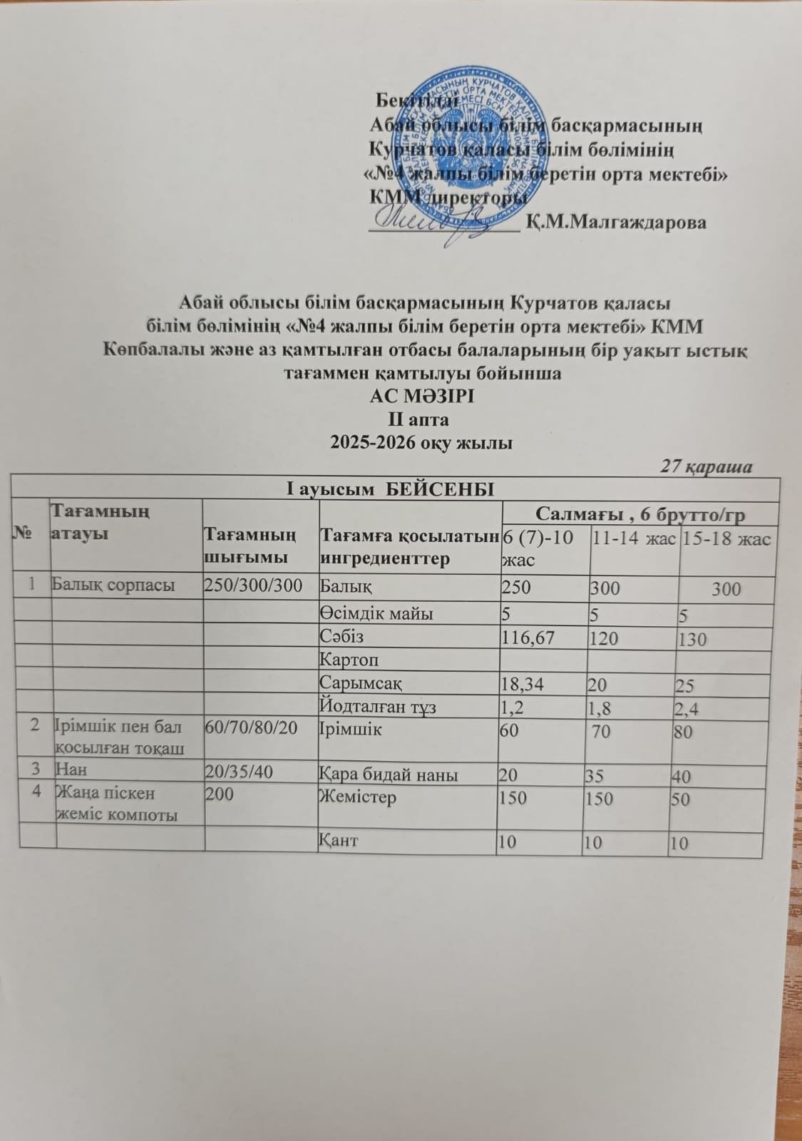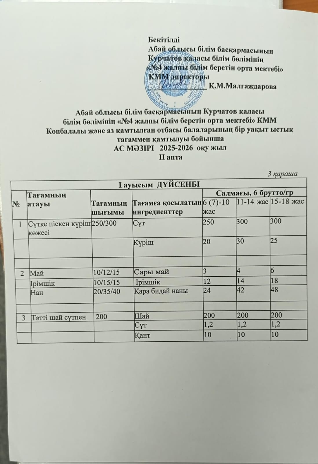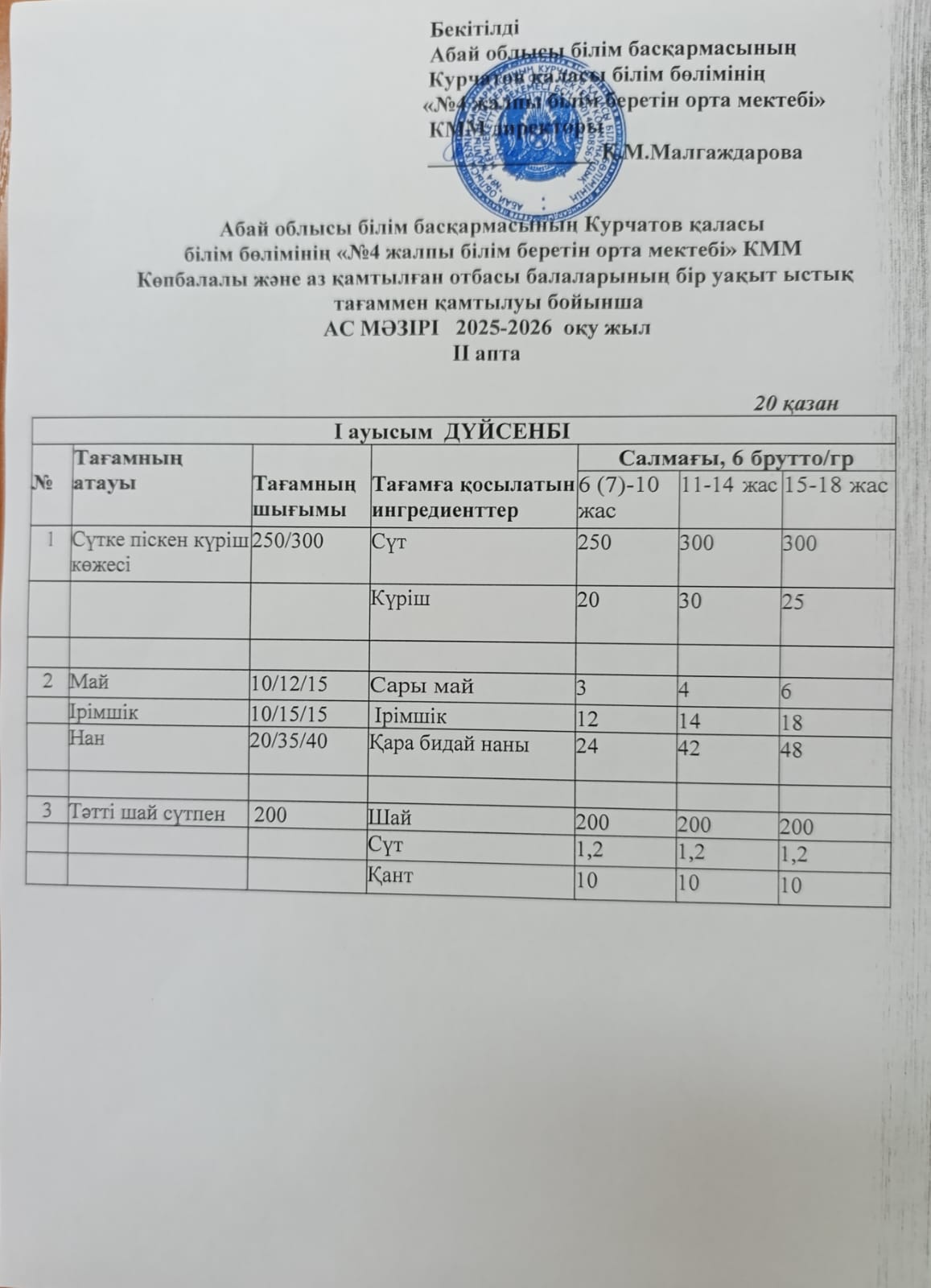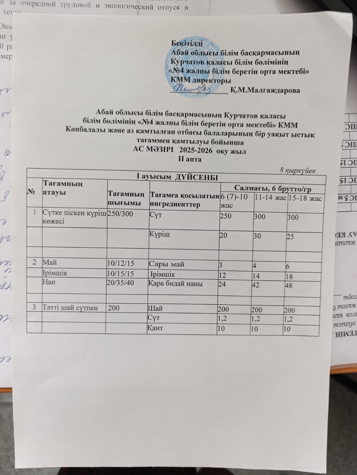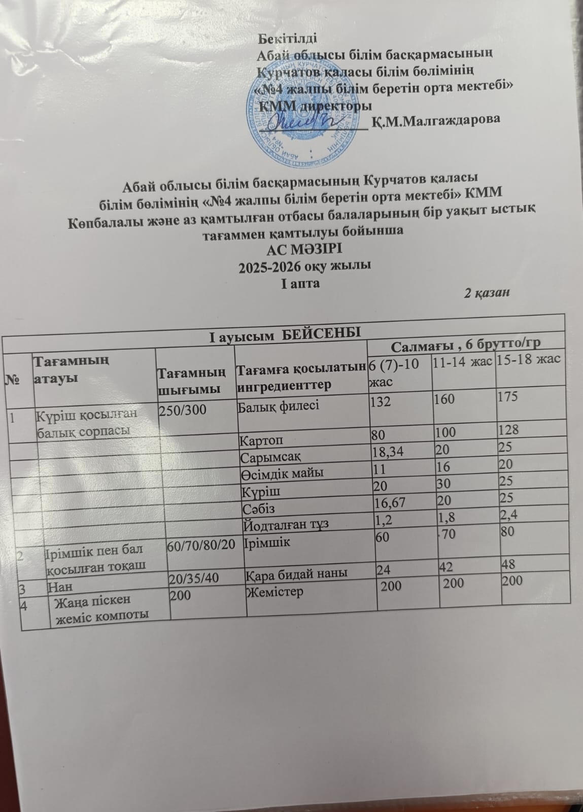 | 2 | 2 апталық 5 күндік ас мәзірі |