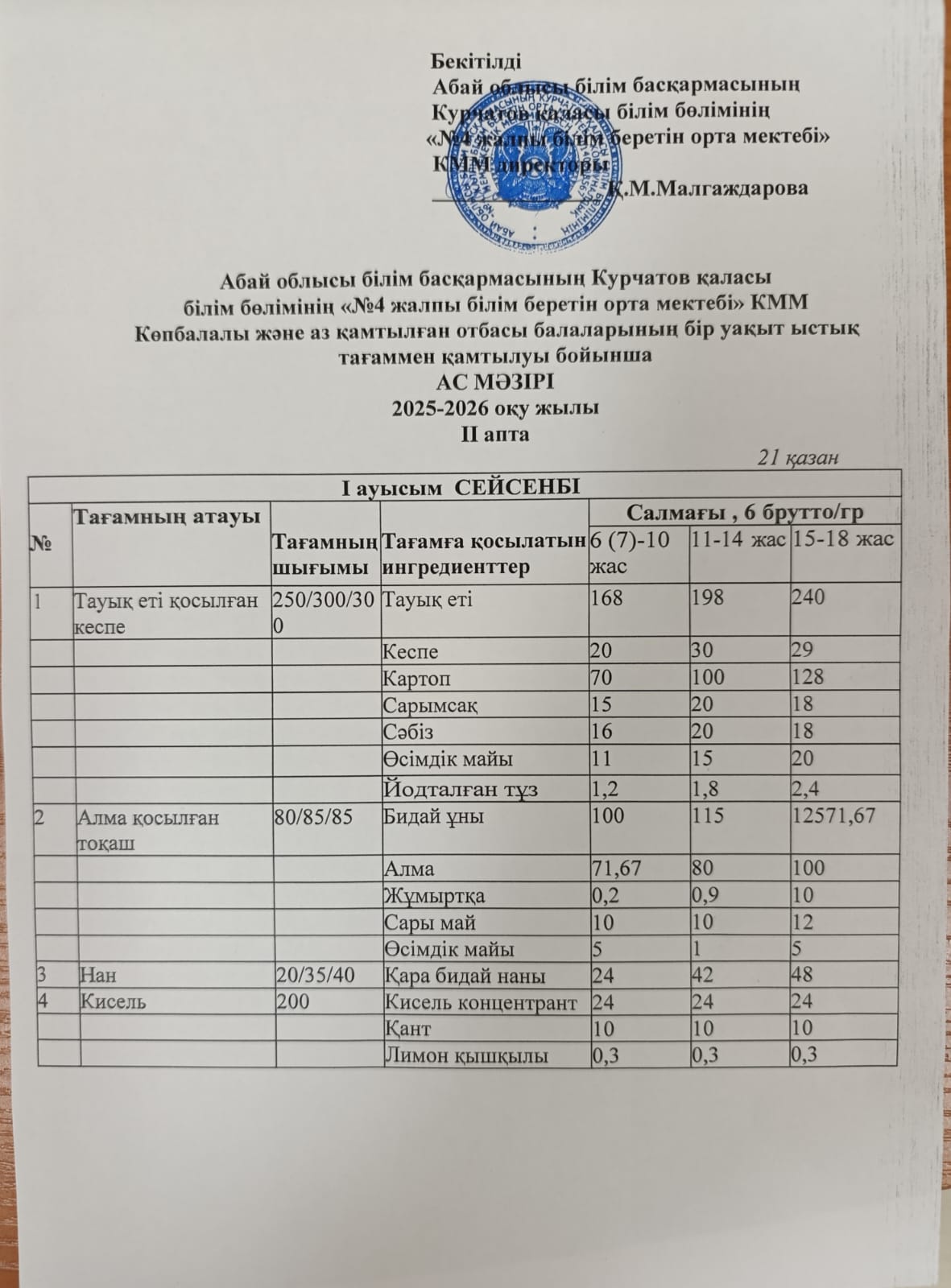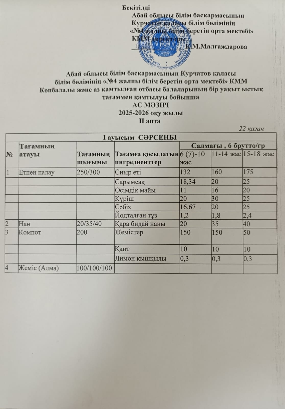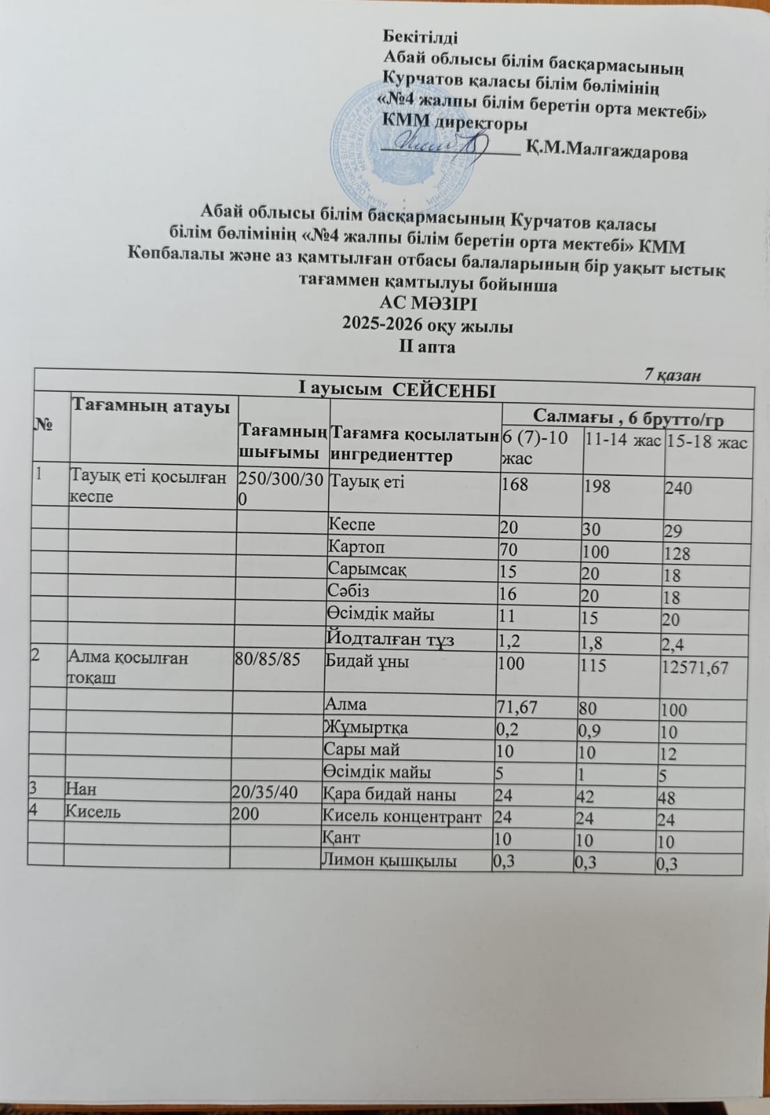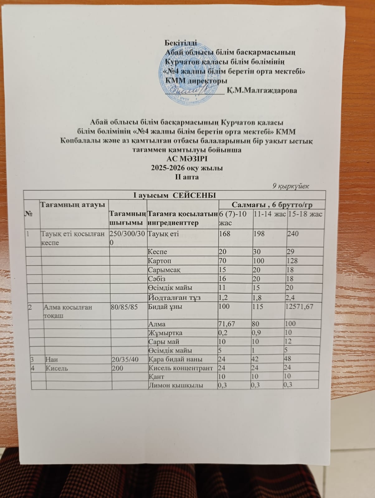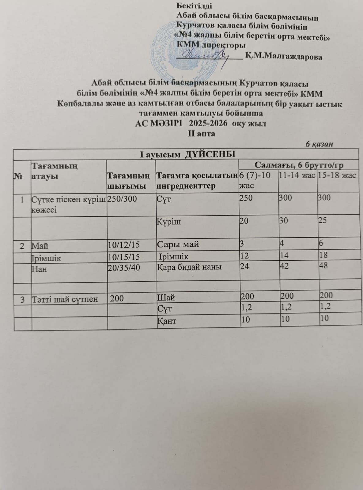 | 2 | 2 апталық 5 күндік ас мәзірі |