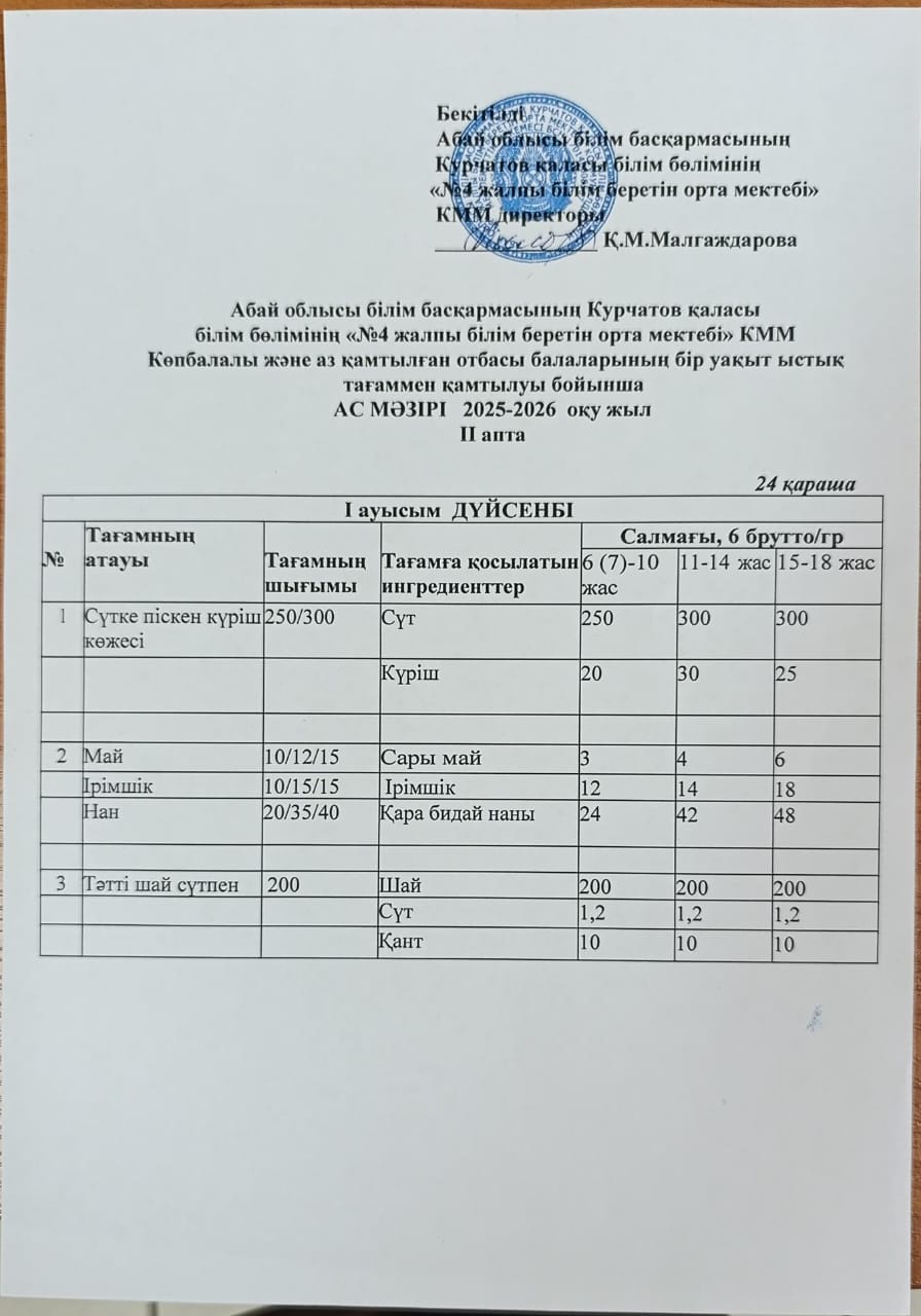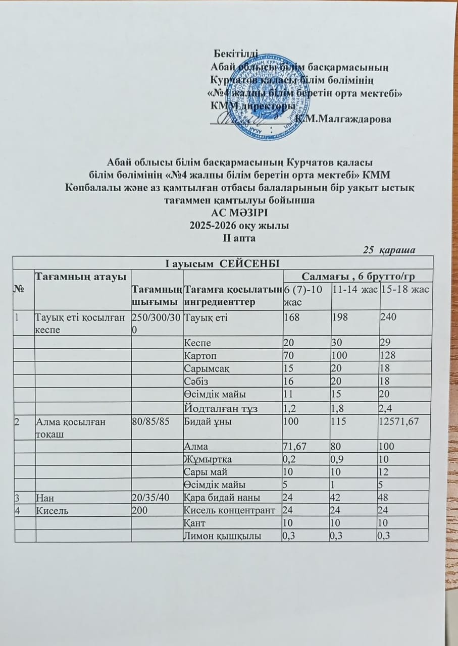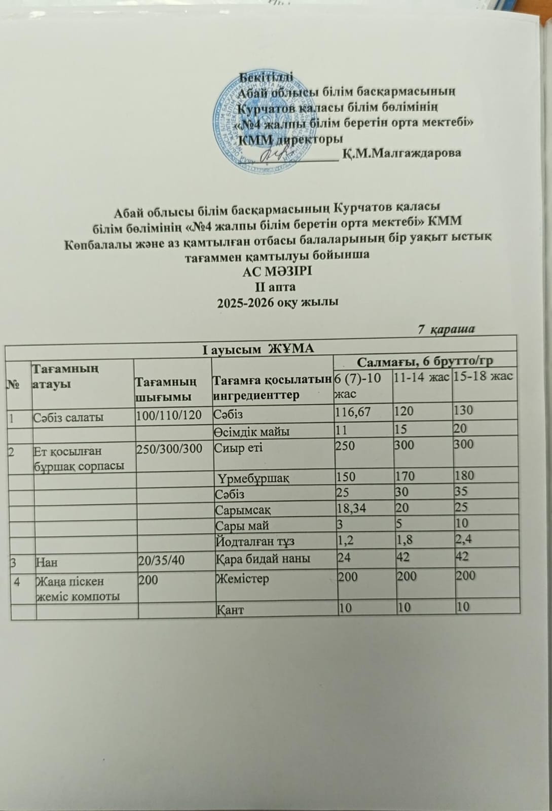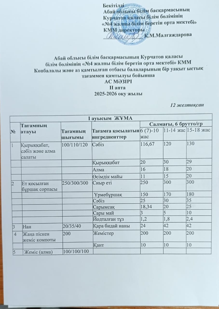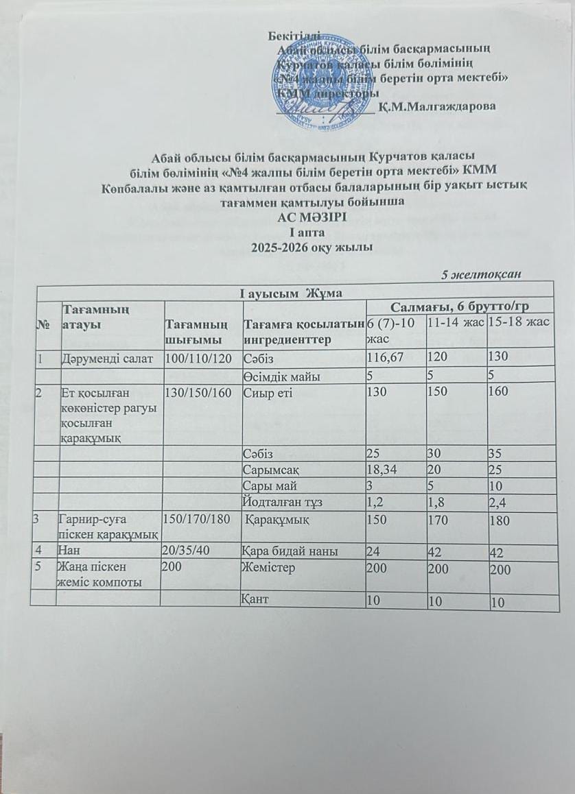 | 1 | 2 апталық 5 күндік ас мәзірі | |