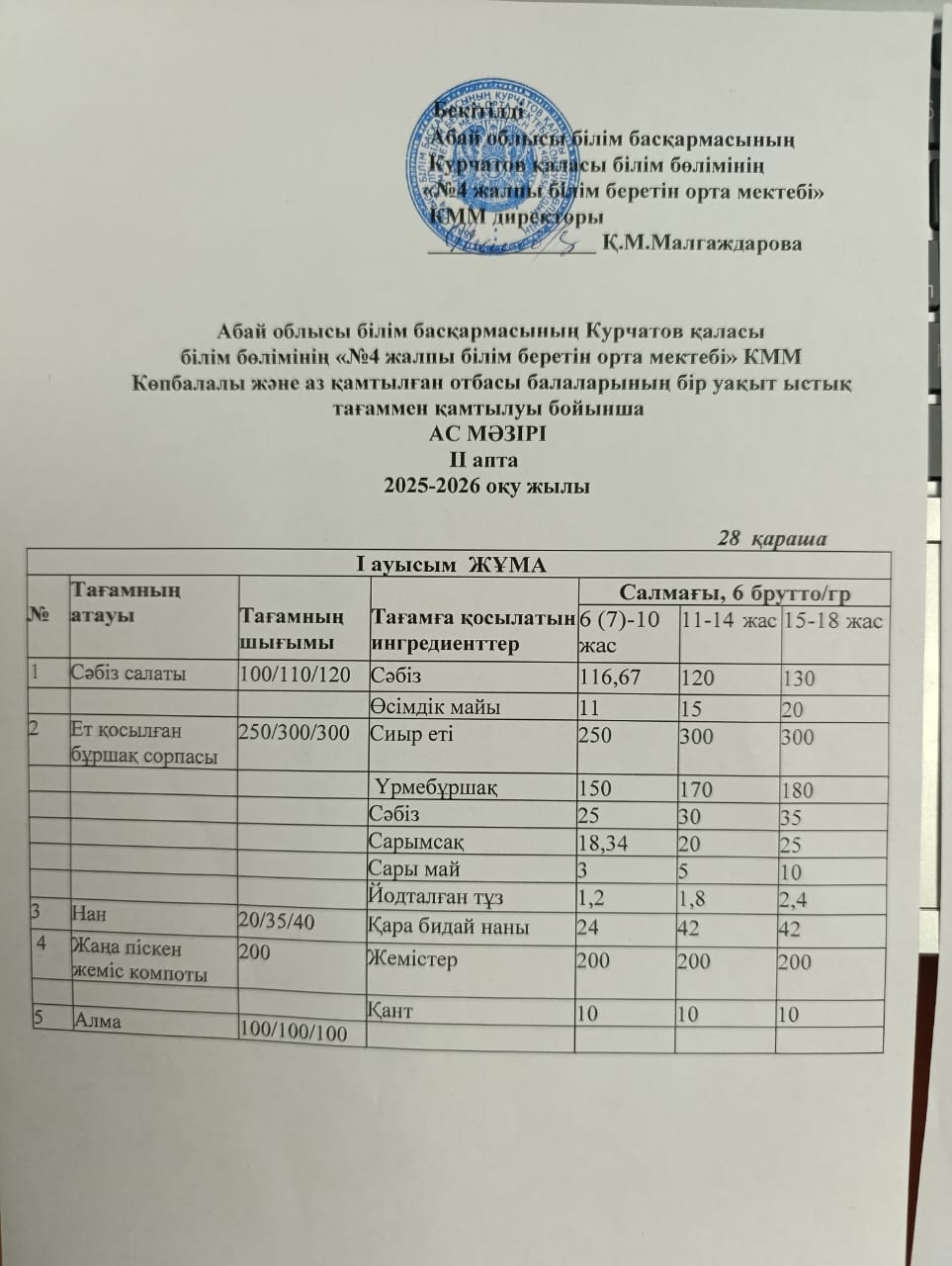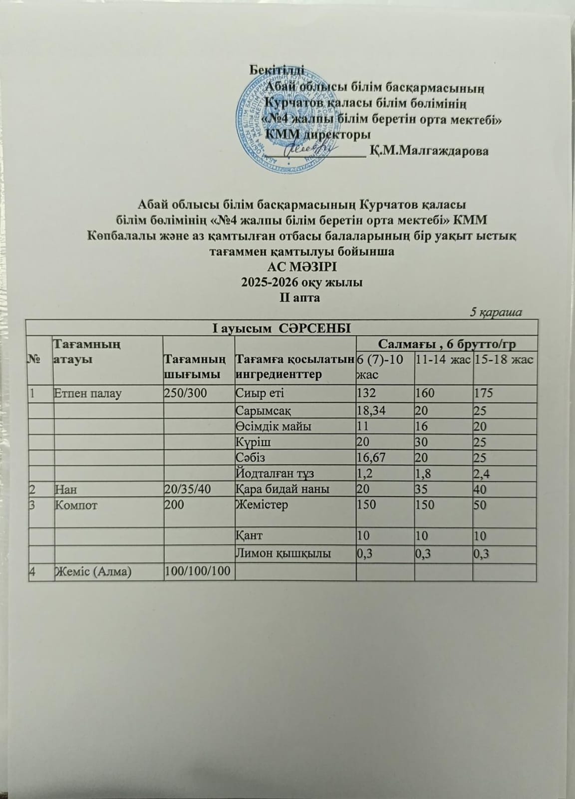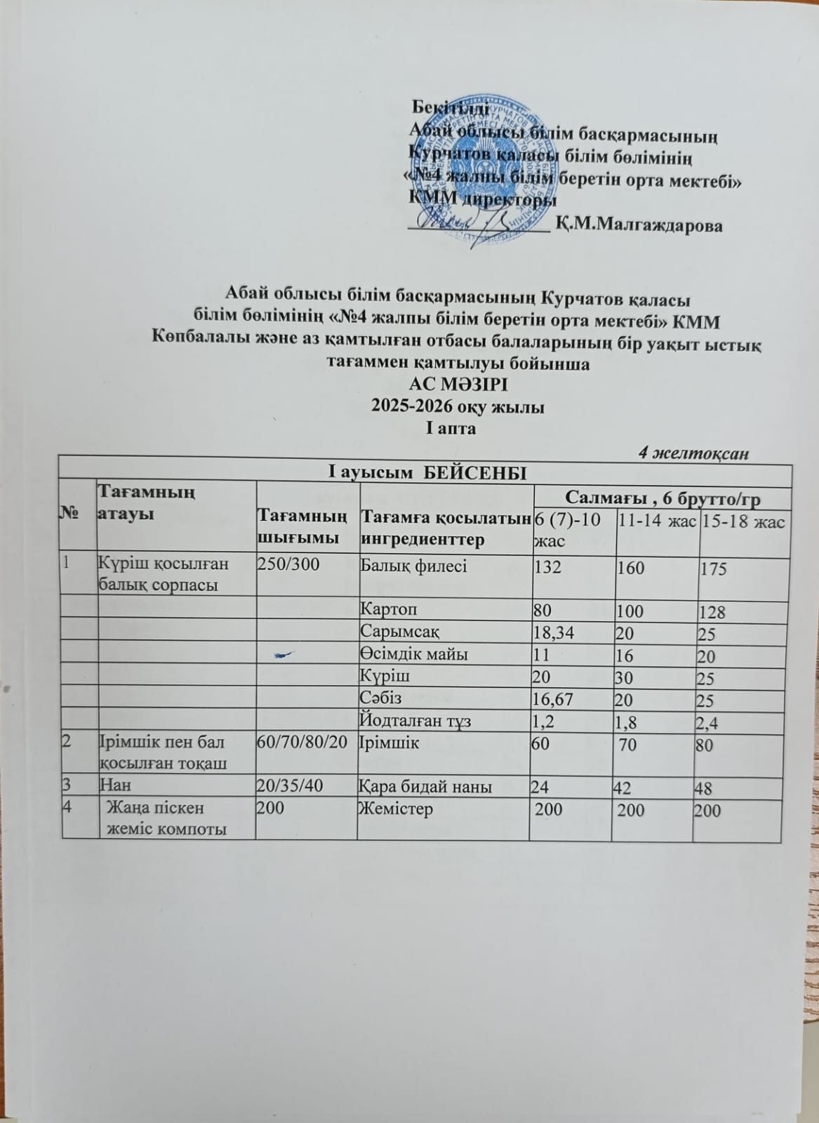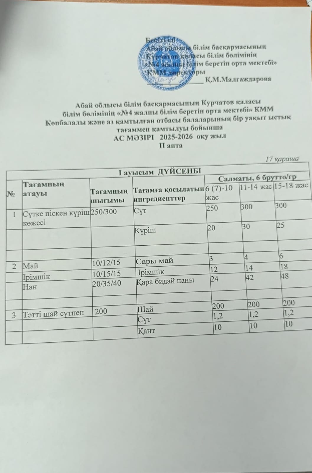 | 1 | 2 апталық 5 күндік ас мәзірі | |