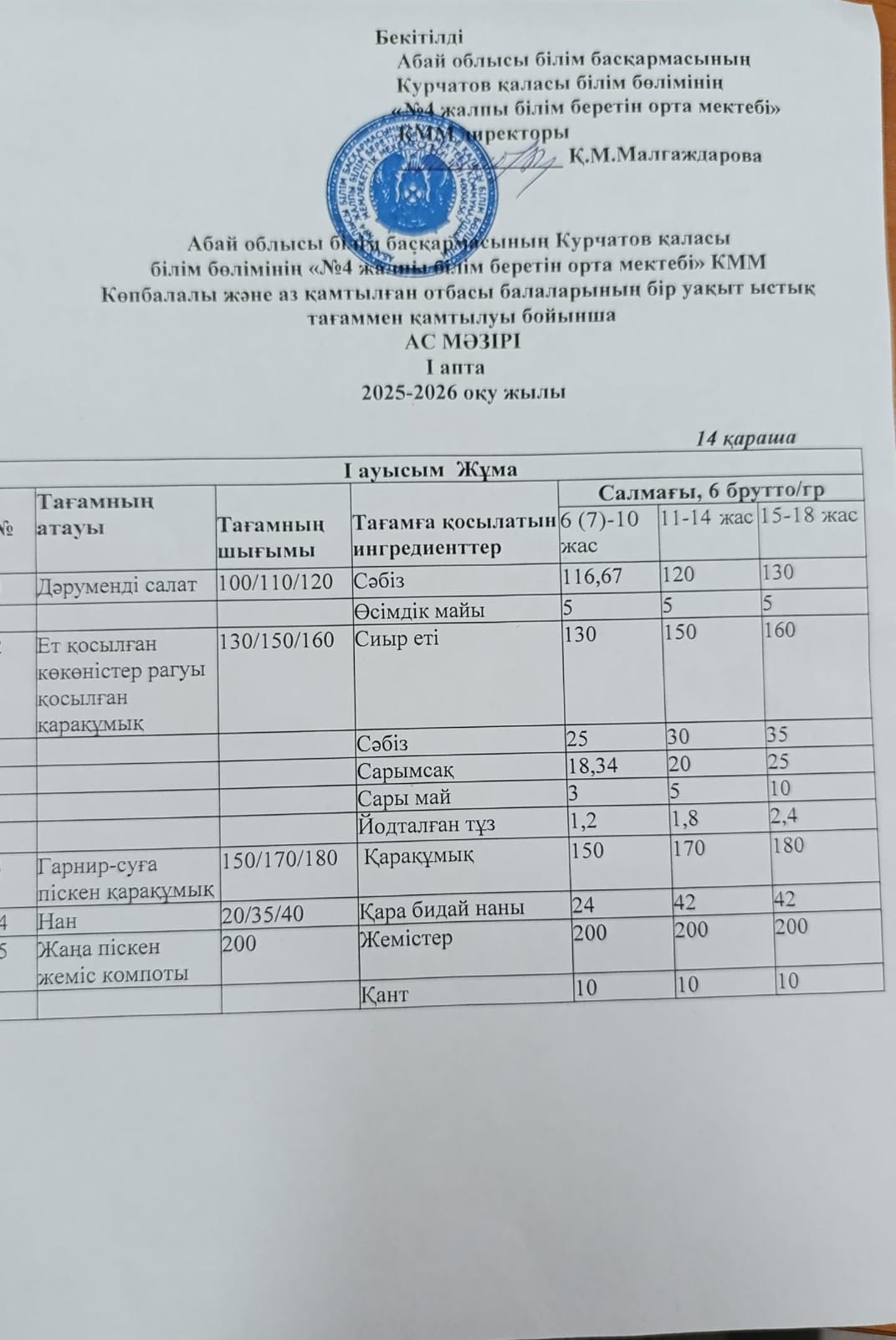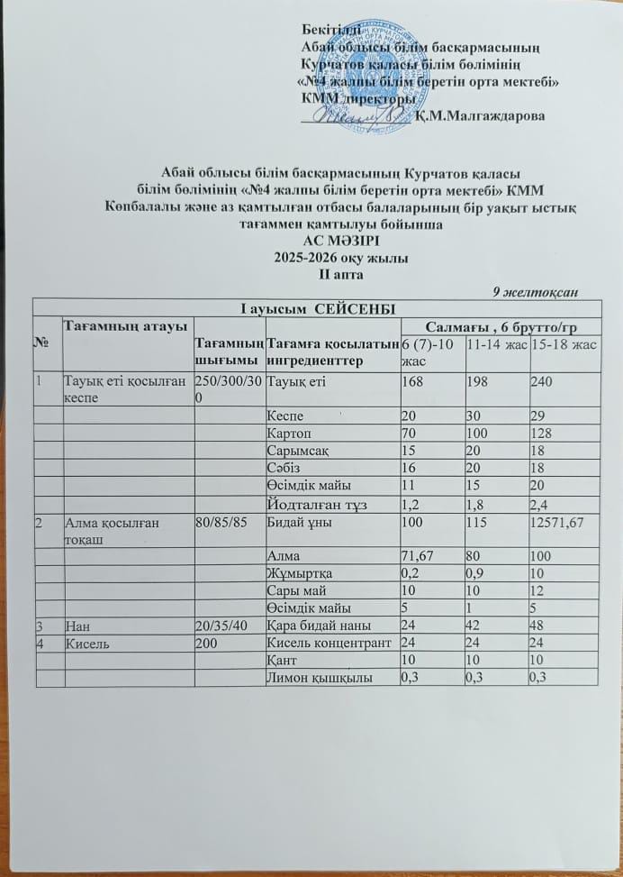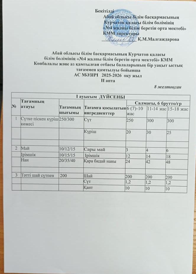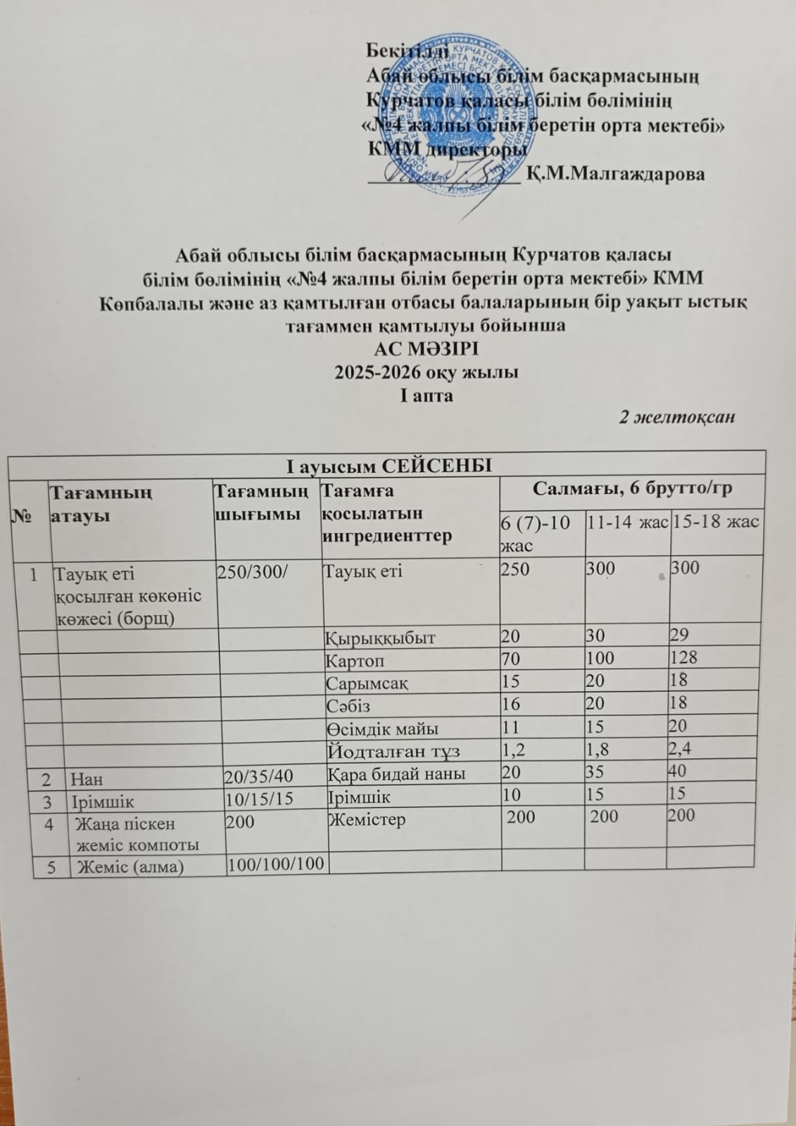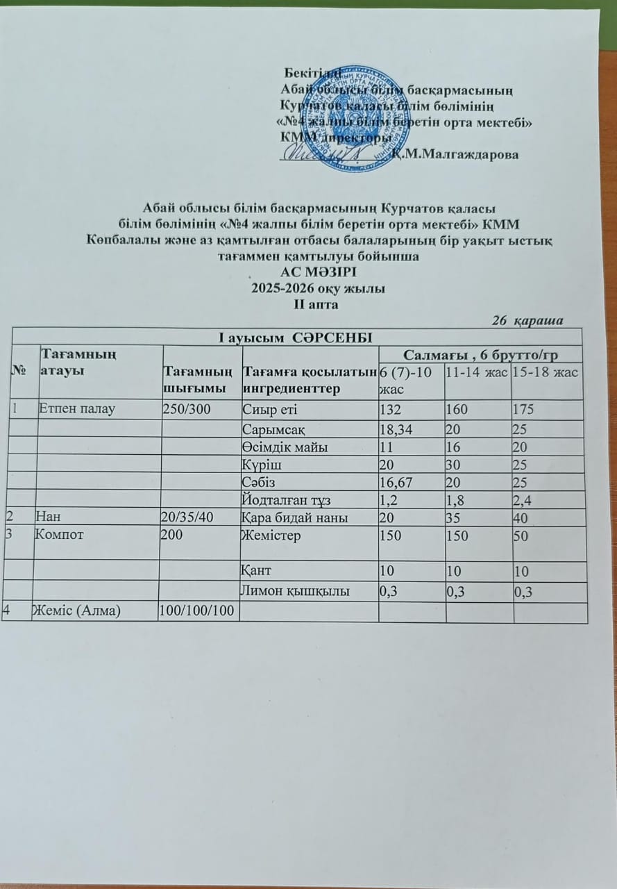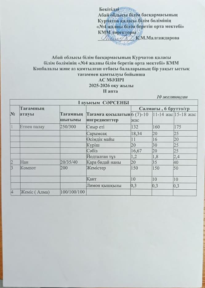 | 1 | 2 апталық 5 күндік ас мәзірі | |