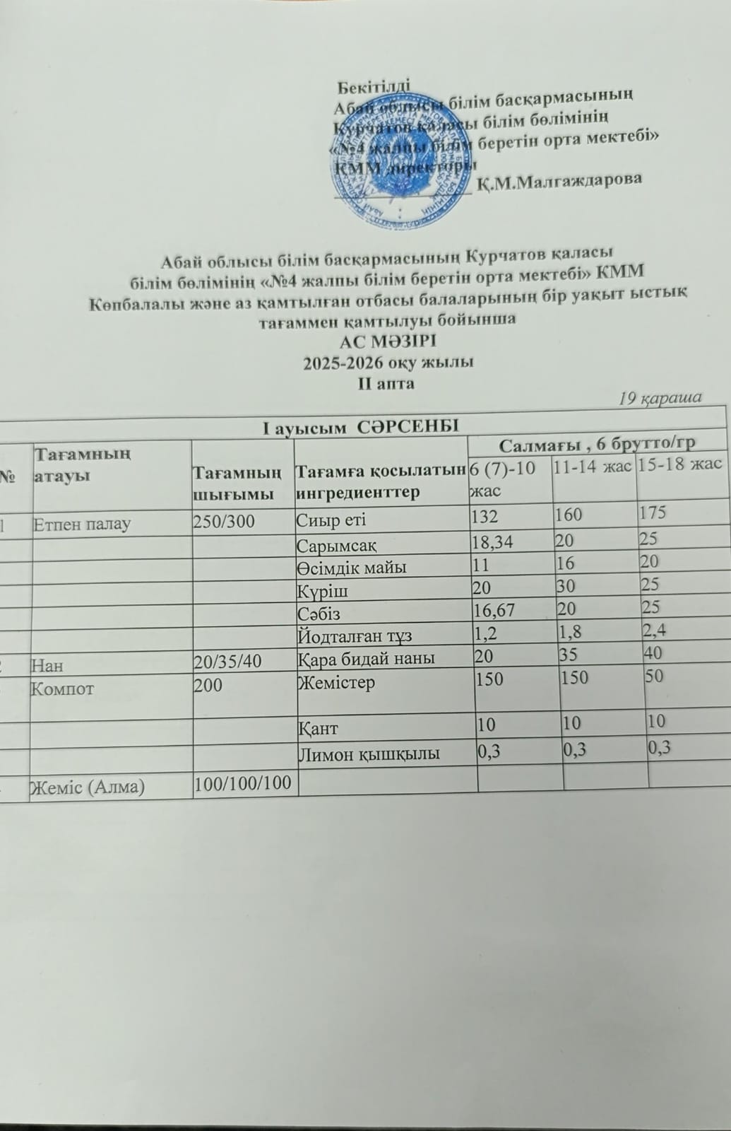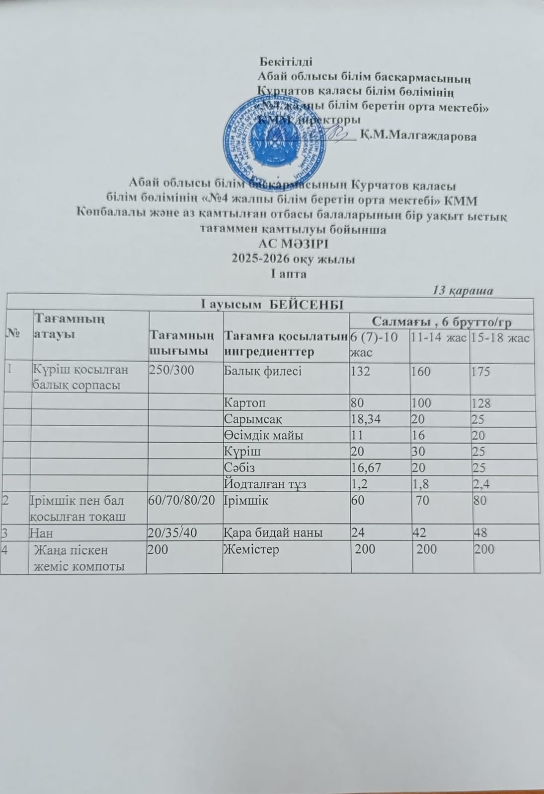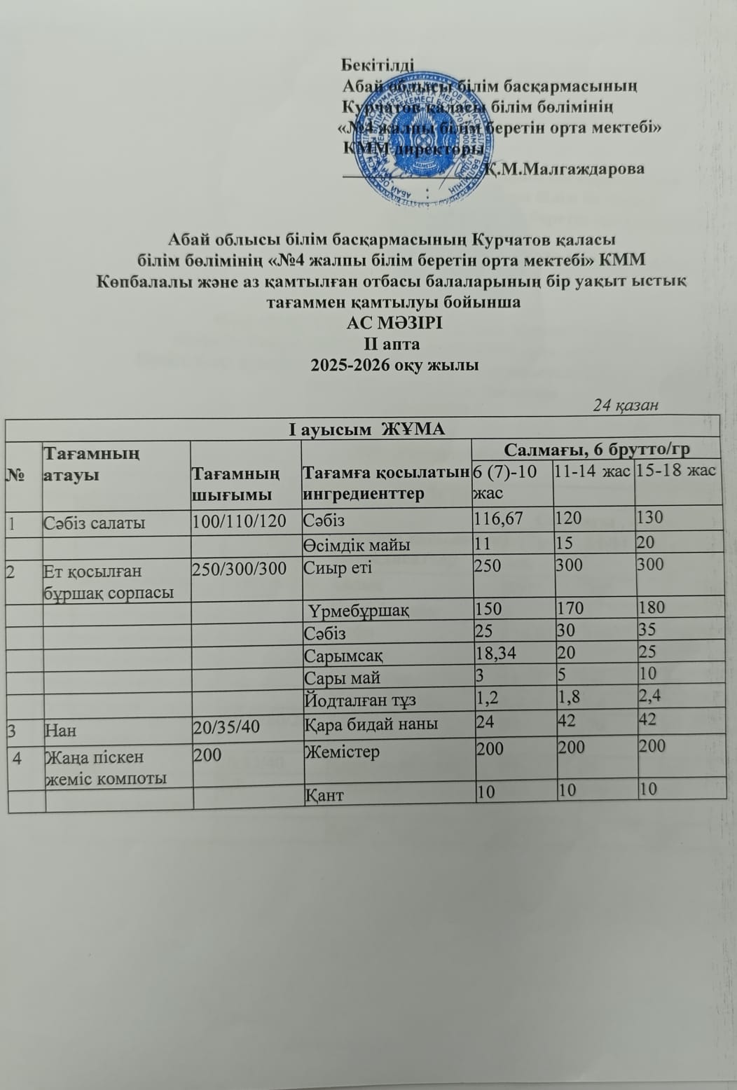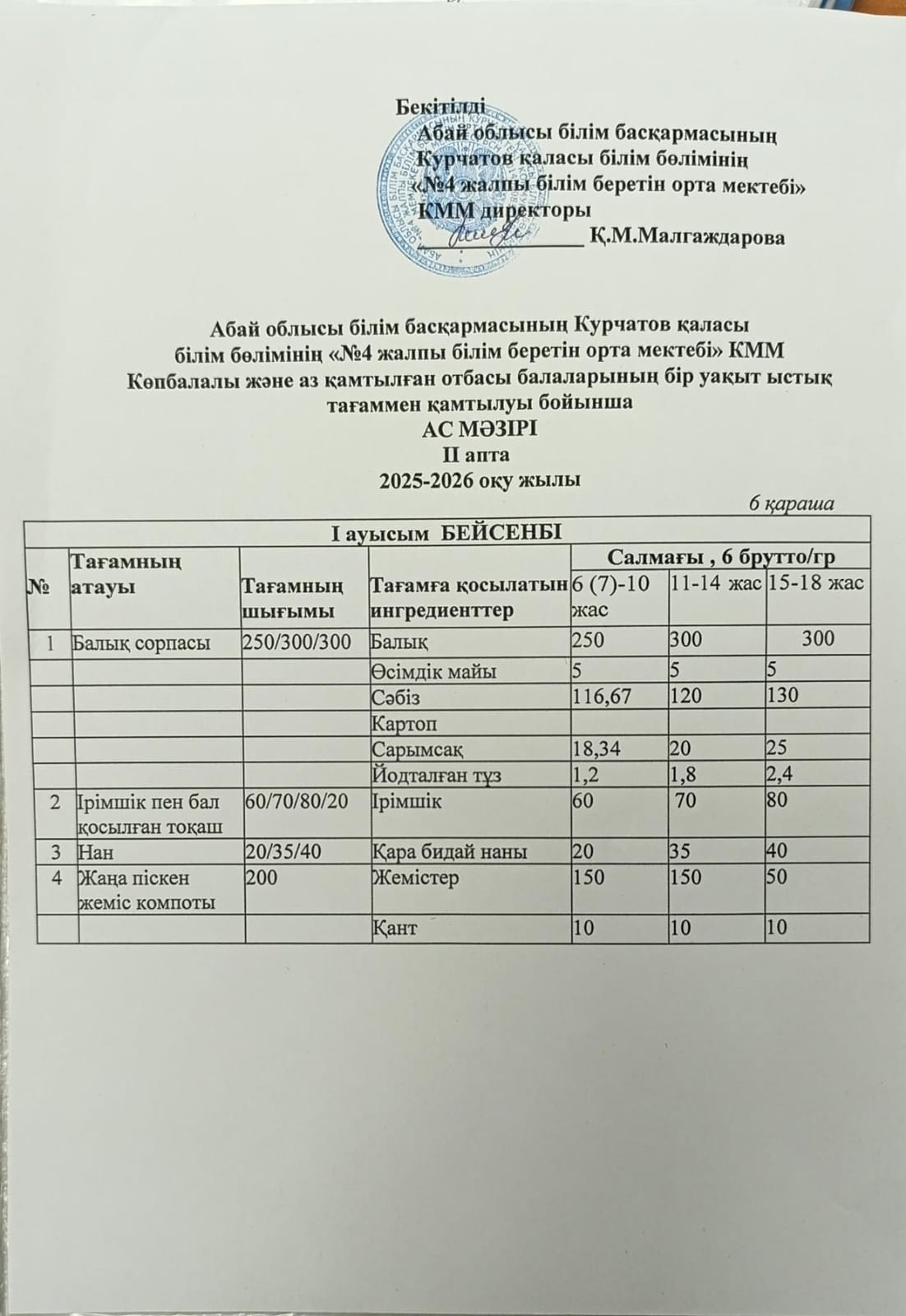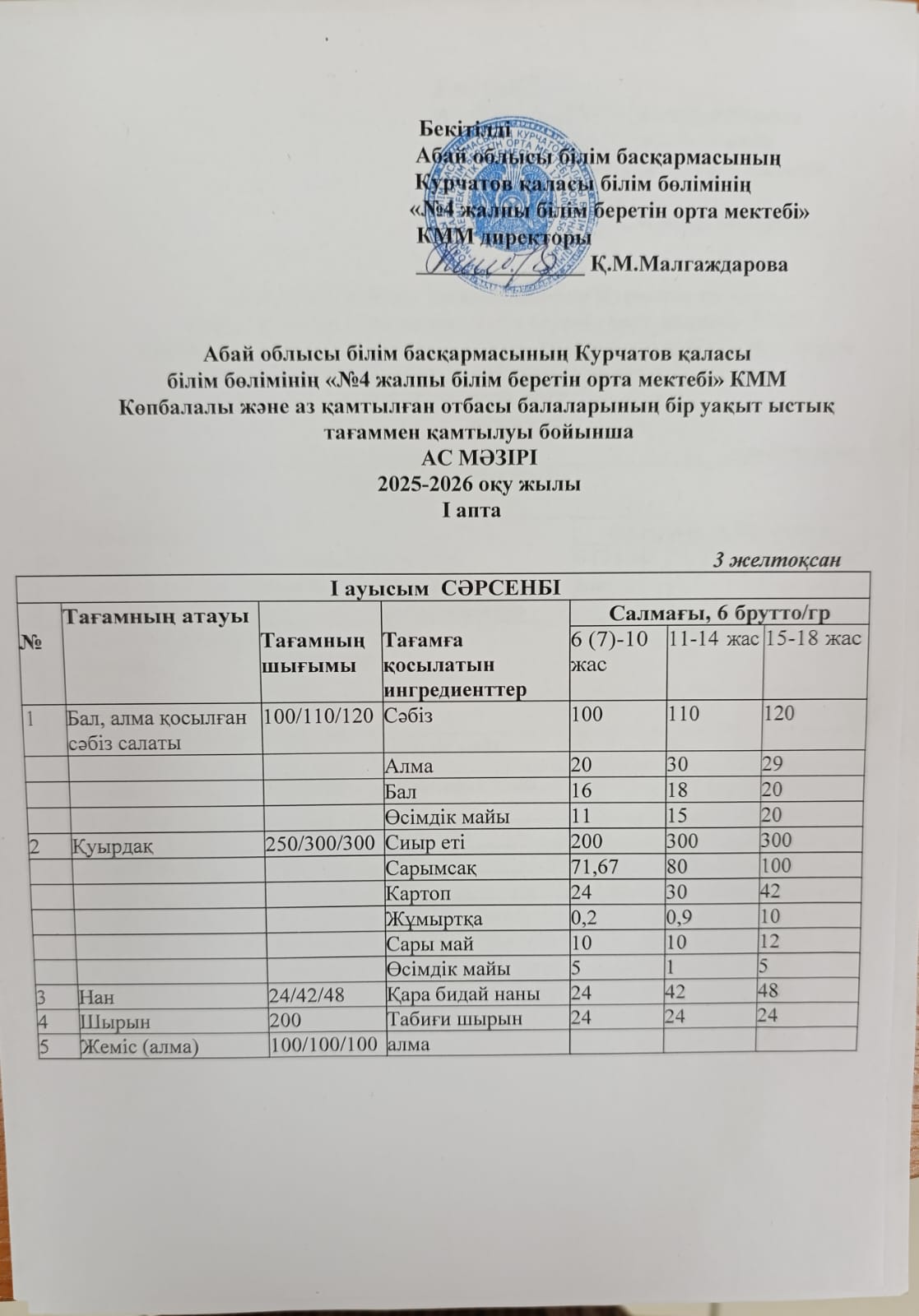 | 1 | 2 апталық 5 күндік ас мәзірі | |
