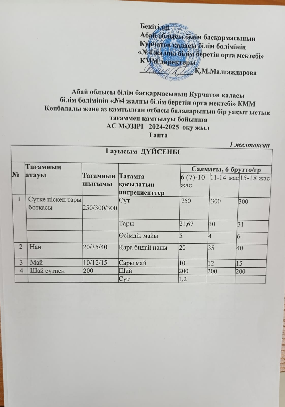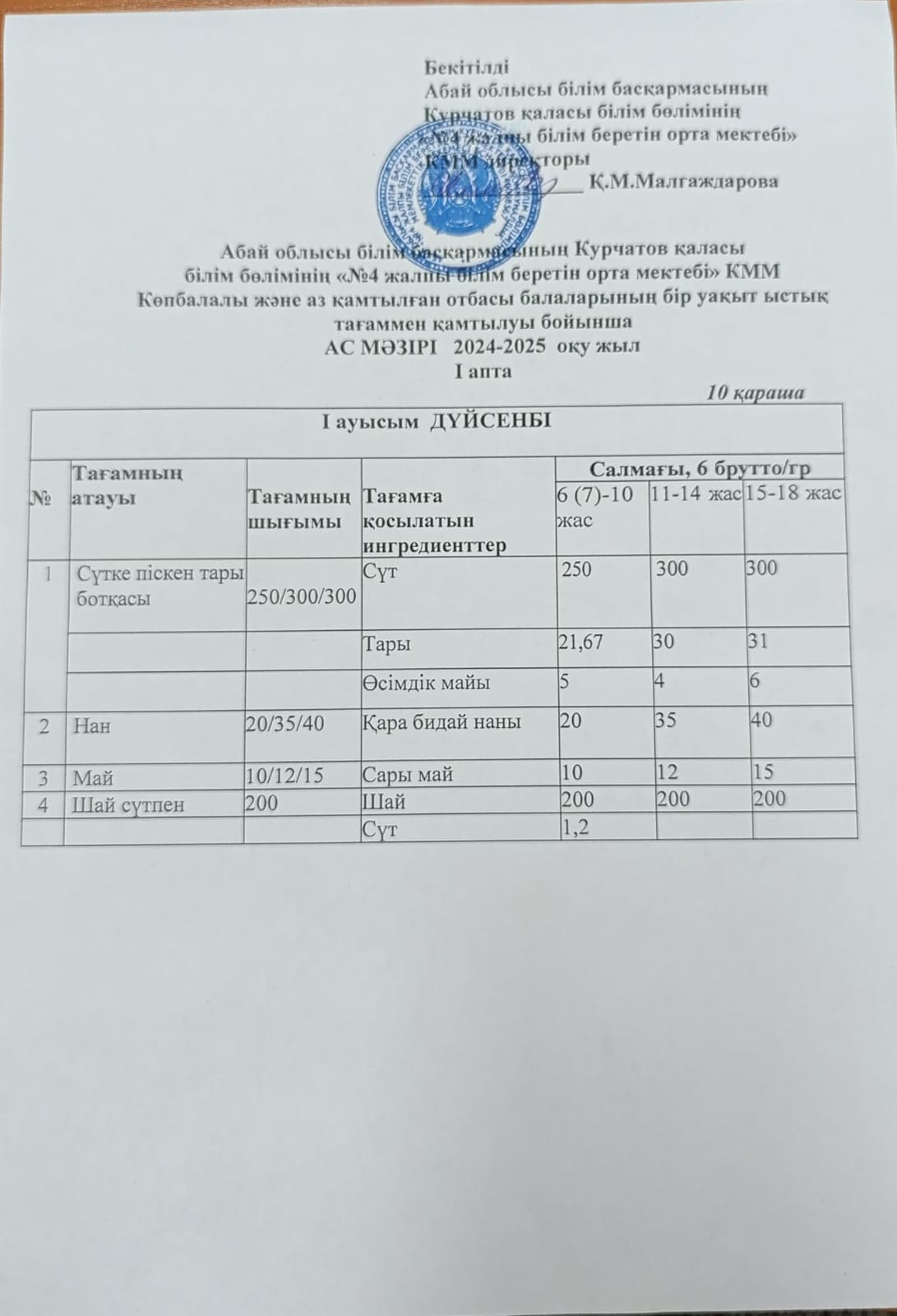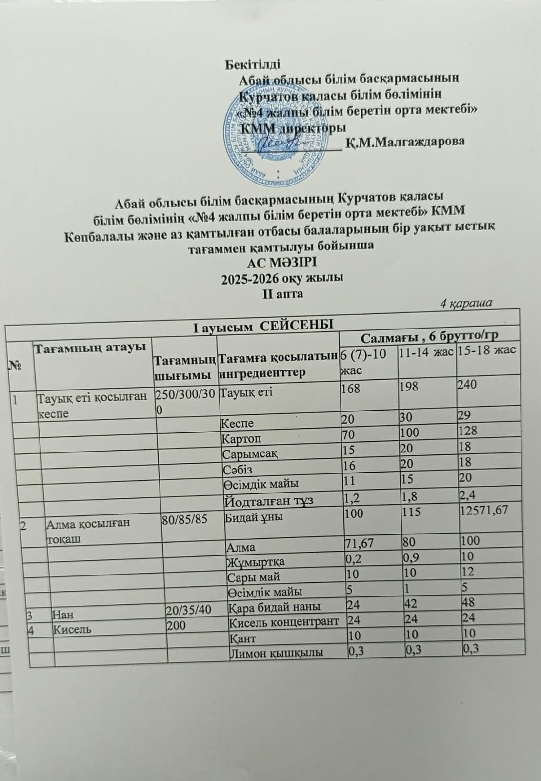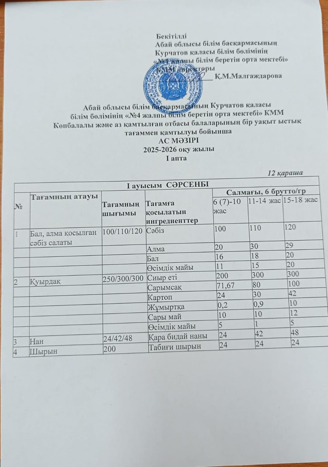 | 1 | 2 апталық 5 күндік ас мәзірі | |